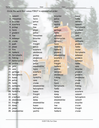 If you are looking for transportation vehicles alphabetical order worksheet teaching resources you've visit to the right place. We have 8 Pics about transportation vehicles alphabetical order worksheet teaching resources like transportation vehicles alphabetical order worksheet teaching resources, common nouns 1 alphabetical order ii spanish worksheet teaching resources and also crime law enforcement courts alphabetical order worksheet teaching. Read more: